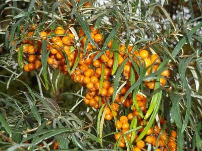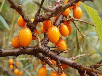 Tak wyglądają owoce rokitnika - niestety nie są to owoce z naszych