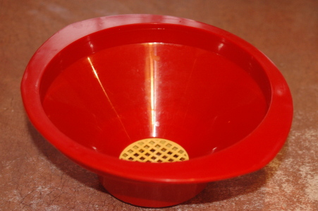 Taki lejek z sitkiem, jest bardzo pomocny podczas wylewania nalewki ze słoja z owocami.